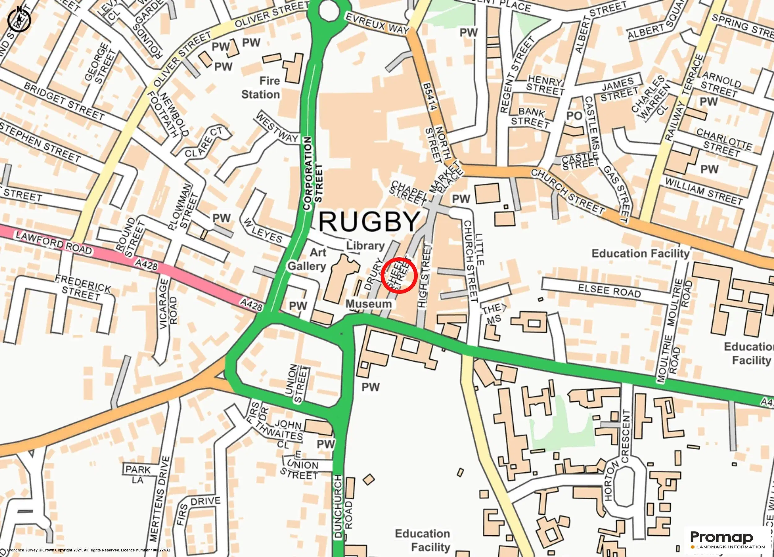 The property is situated towards the southern end of Sheep Street, near to Rugby School. Sheep Street forms part of the main pedestrianised retail area in Rugby town centre. Rugby is situated 35 miles to the southeast of Birmingham, some 80 miles to the north of London. Junction 1 of the M6 is approximately 3 miles to the north, and access to other major motorway road networks including M6, M1, M40 and A14 are within easy reach.